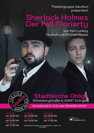 Gaudium präsentiert im April 26 Sherlock Holmes: Der Fall Moriarty in der Stadtkirche Ohligs!